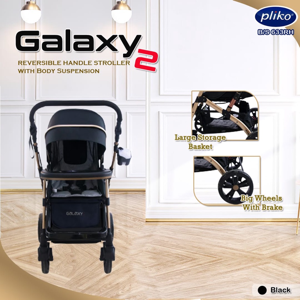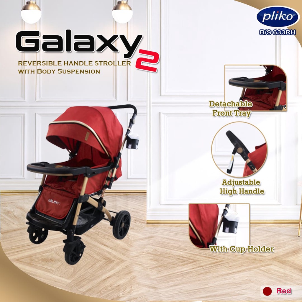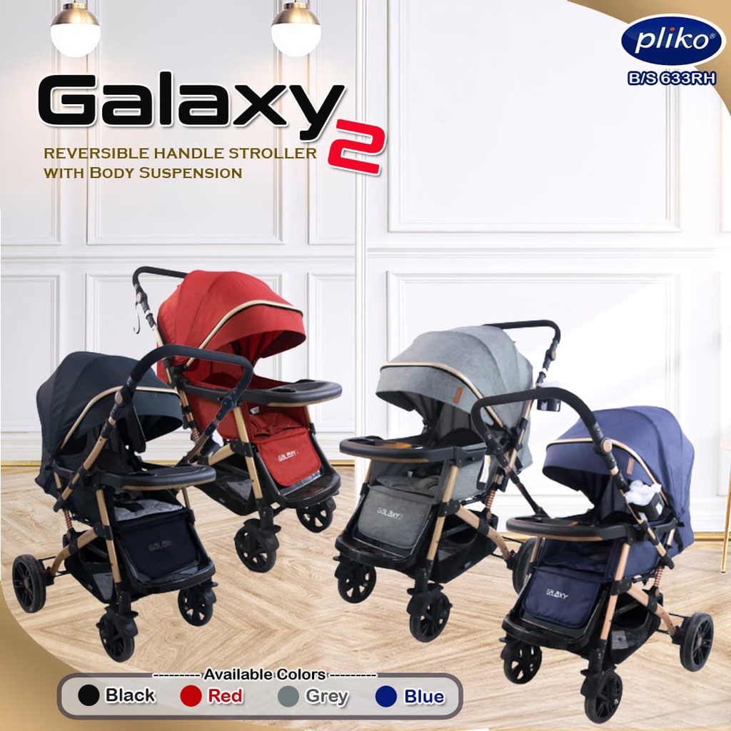 Harga [NEW] GOLD FRAME STROLLER BAYI PLIKO GALAXY 2 BS 633 RH | KERETA DORONG 2 DUA ARAH DENGAN SUSPENSI | PERLENGKAPAN BAYI| KADO | STROLLER BAYI