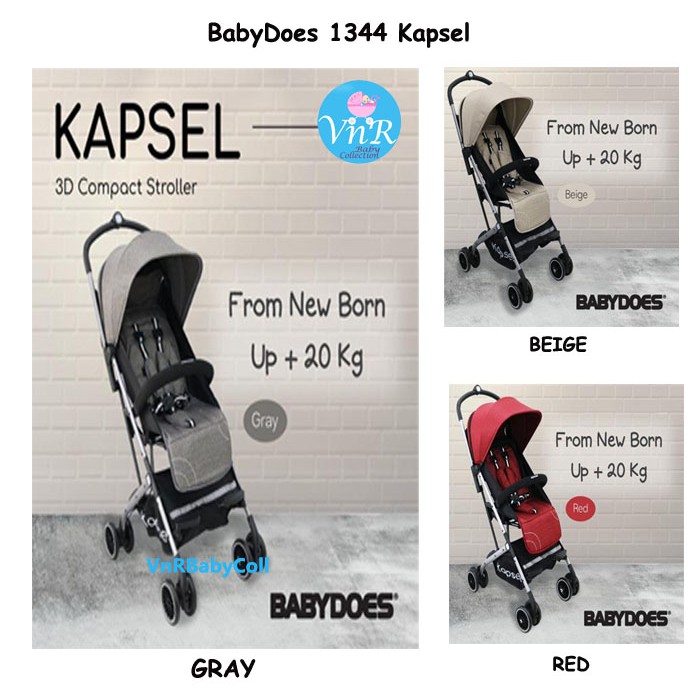 Kereta Dorong Bayi Stroller BabyDoes 1344 Kapsel / Beige / Gray / Red